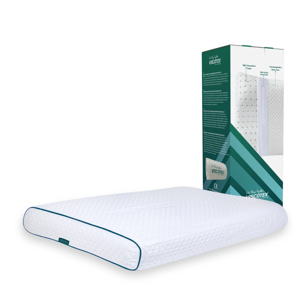 Soğuk ve Ilık Yüzeyli, Çift Taraflı Kılıf, Hava Kanallı Visco Ortopedik Yastık, 60x40x13 cm, Beyaz